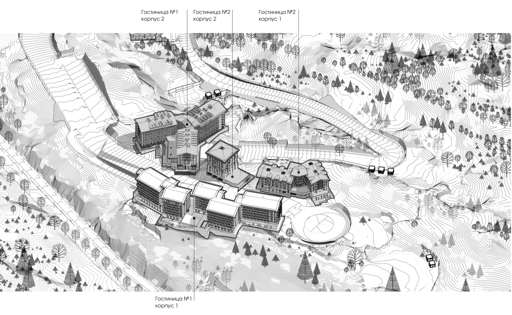Отель расположен рядом с горным плато лагонаки, находящимся на высоте 2000 м над уровнем моря, знаменит своими пейзажами: альпийскими лугами, карстовыми воронками и каменными россыпями. Интерьер вдохновлён цветами горной местности — от глубоких зелёных и коричневых до холодных синих и белых тонов.
