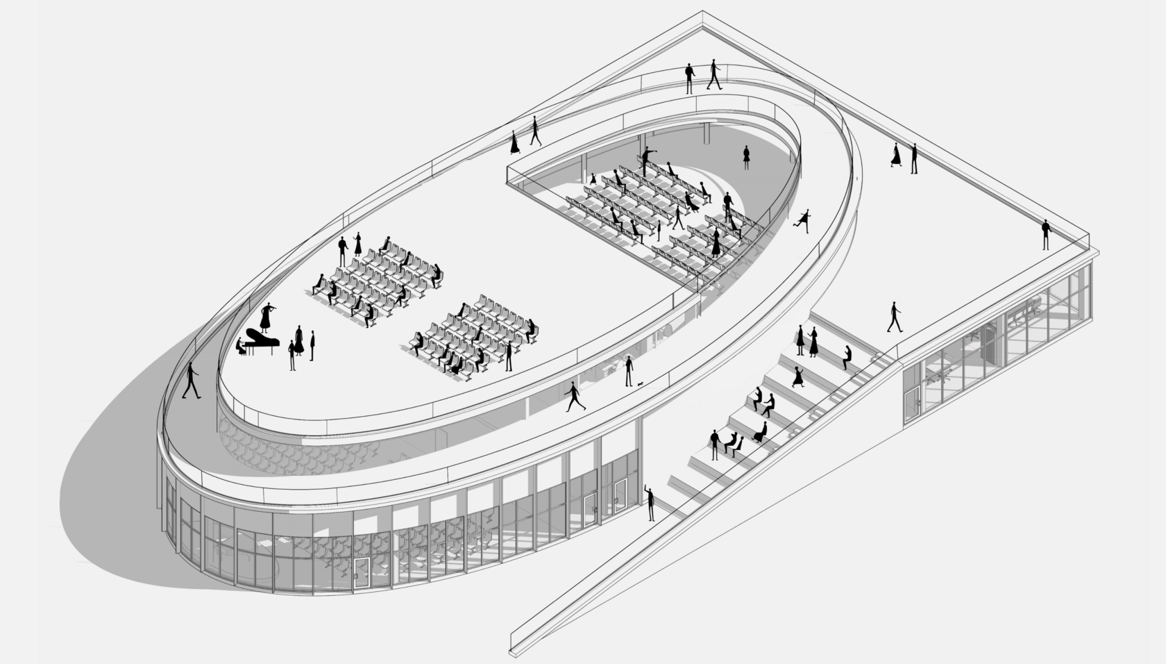 Архитектура вдохновлена окружающей природой и призвана стать неотъемлемой частью ландшафта, стереть границы между природным и рукотворным.