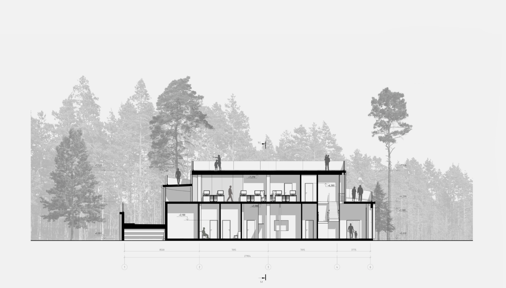 Комплекс расположен на территории соснового леса с минимальным вмешательством в природный ландшафт. Основные помещения обладают видовыми характеристиками в сторону соснового леса и Финского залива. Комплекс включает три функциональных объекта: культурно-досуговый центр, ресторан и спортивно-оздоровительный центр.