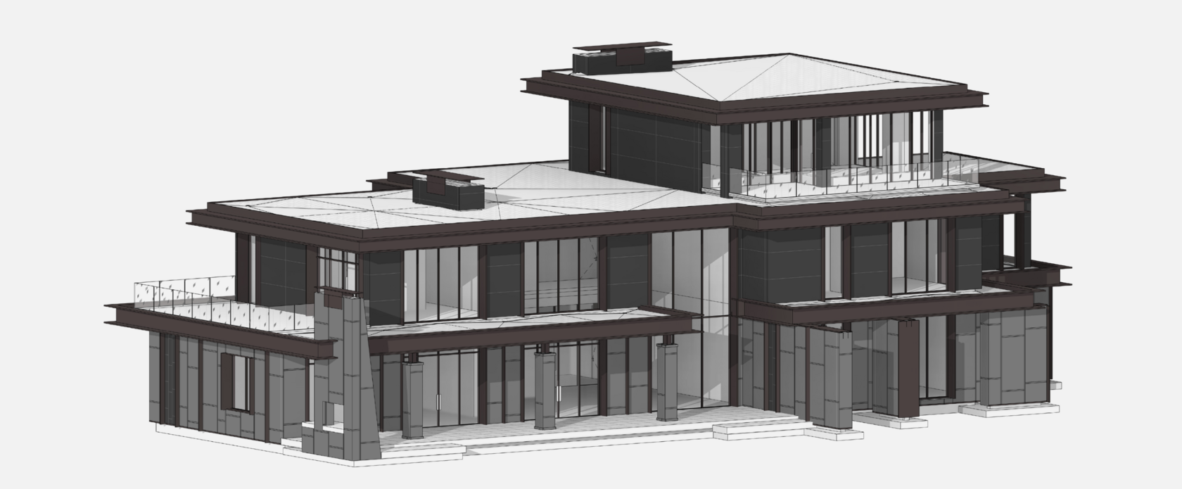 Современный жилой комплекс, созданный в духе архитектурного минимализма и природной гармонии. Основная идея проекта — объединить комфорт современной жизни с природной средой северо-западного лесного ландшафта. Композиция строений формирует единый ансамбль: жилой дом, гаражный блок и спа-комплекс расположены так, что создают сбалансированное и визуально лёгкое восприятие.