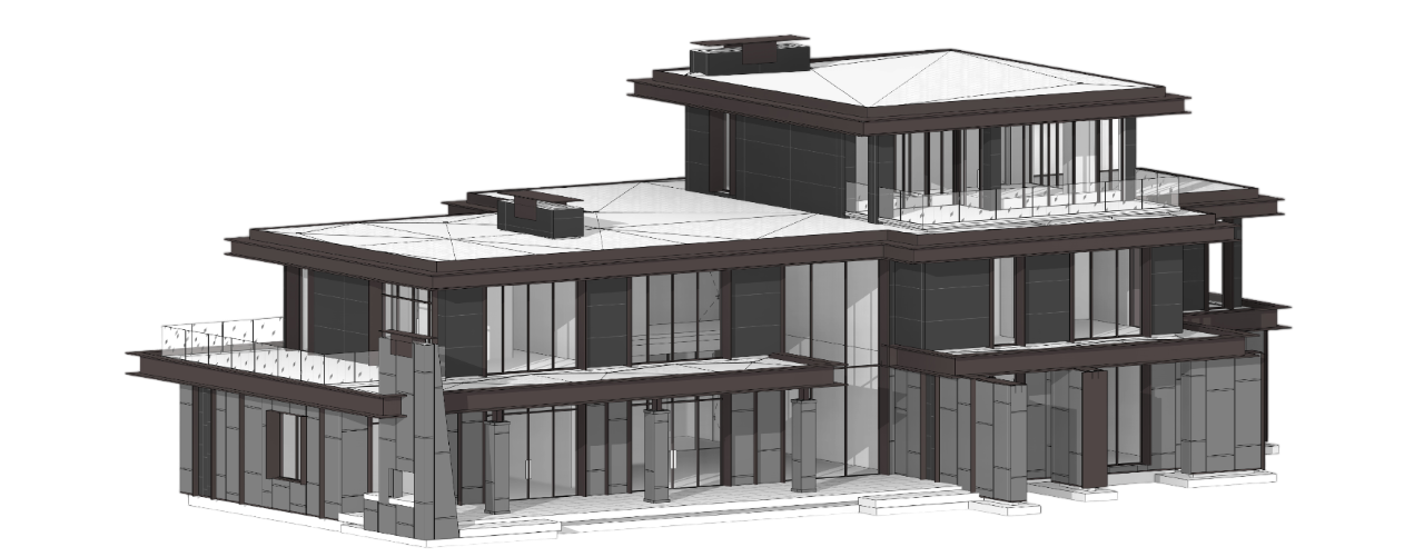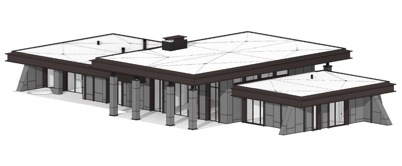Современный жилой комплекс, созданный в духе архитектурного минимализма и природной гармонии. Основная идея проекта — объединить комфорт современной жизни с природной средой северо-западного лесного ландшафта. Композиция строений формирует единый ансамбль: жилой дом, гаражный блок и спа-комплекс расположены так, что создают сбалансированное и визуально лёгкое восприятие.